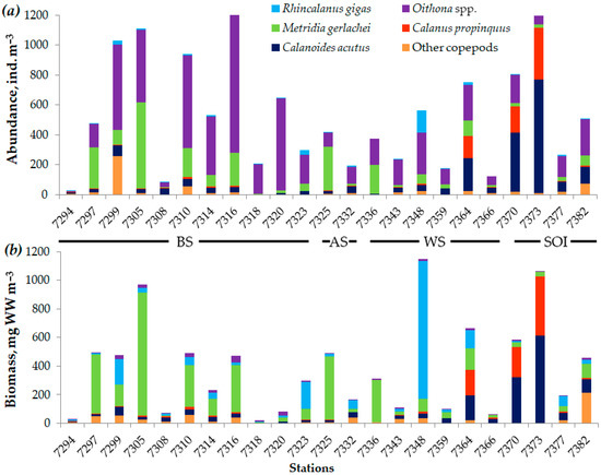 Previously, data on the mesozooplankton together with the other plankton categories (phytoplankton, macroplankton, and ichthyoplankton) were obtained as preliminary results, e.g., [20,29]; in the present study, we provide more details and carried out additional analyses.