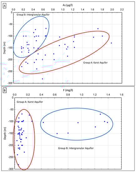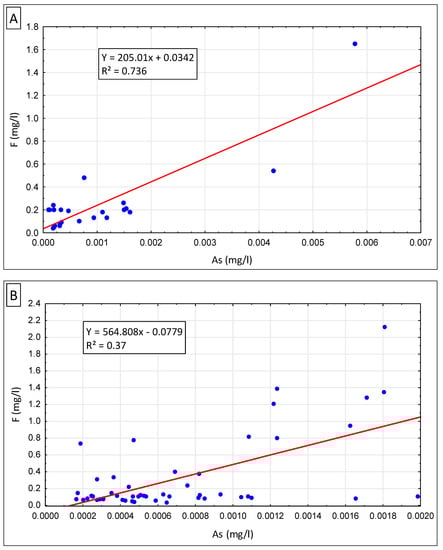 - Parrone, D.; Ghergo, S.; Frollini, E.; Rossi, D.; Preziosi, E. Arsenic-fluoride co-contamination in groundwater: Background and anomalies in a volcanic-sedimentary aquifer in central Italy. J. Geochem. Explor. 2020, 217, 106590. [Google Scholar] [CrossRef]
