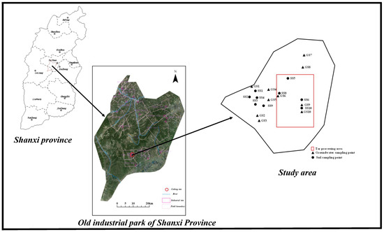 Twenty sampling sites were set up in the study area, including ten soil and ten groundwater sites. All PAHs were sampled and detected at each sampling site; 101 soil and 10 groundwater samples were collected (Figure 1).