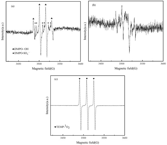 (a) SO4− and ·OH, (b) O2−, and (c) 1O2 EPR spectrum.