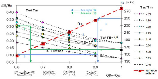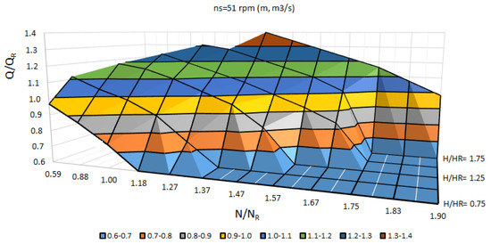 in which results (rpm), which can be expressed based on (m, m3/s) or on (m, kW) as follows: