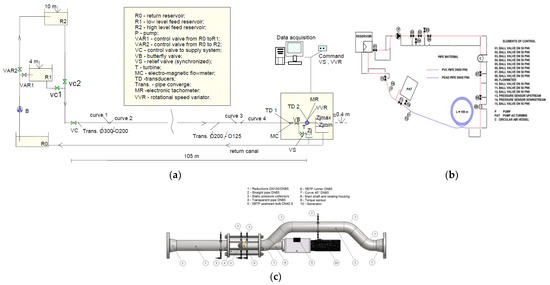 - Ramos, H.; Almeida, A.B. Experimental and Computational Analysis of Hydraulic Transients Induced by Small Reaction Turbomachines; APRH, LNEC.: Lisboa, Portugal, 2001. (In Portuguese) [Google Scholar]