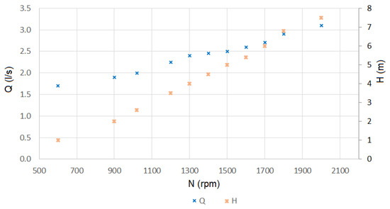 The mathematical representation of turbomachinery parameters can be based on the specification of the relationship between flow rate , speed , head , and torque , which are referred also to as pump characteristics. Some parameters can be defined as dimensionless values related to the point of best efficiency (also known as nominal or rated conditions) to be used as reference in different applications [6,23,25,26]: