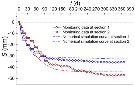 Comparison of settlements between monitoring data and results of numerical simulations.