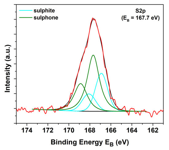 Deconvoluted S2p peak of the N,S-TiO2 sample.