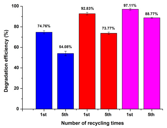 The photocatalysts were collected through the tank’s bottom valve, so it could be reused without any further treatment for at least five times. The cleaned water was collected through a tube connected close to the top of the precipitation tank (Figure 2).