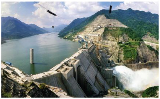 To verify the validity and feasibility of this proposed method, an RCC Dam (Figure 4) located in the Guangxi Zhuang Autonomous Region on the south coast of China was taken as a case study. This RCC Dam is the most important engineering structure of the Red River cascade development project used for power generation, flood prevention, and shipping, with a dam height of 216.5 m.