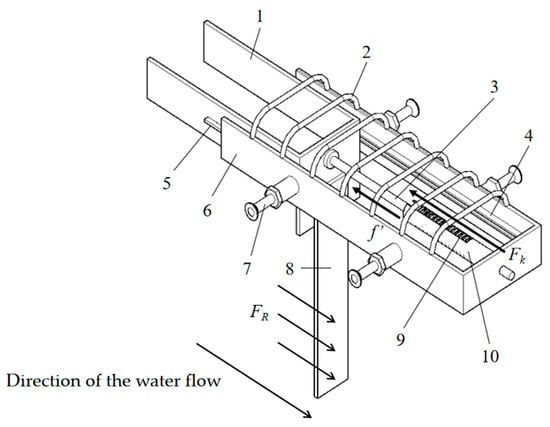 In the formula, FR is the force of the water flow pushing the measurement plate, Fk is the spring force, and f′ is the friction between the devices.