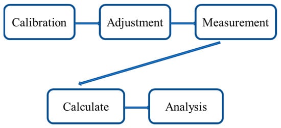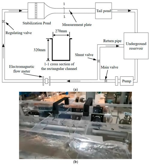 In this experiment, the force on the plate surface in the channel and the water level 0.2 m upstream of the measurement plate were measured under the conditions of 20–80 m3/h flow, and the experimental results were compared with the simulated values. As shown in Figure 6, the main operation steps of the experiment were as follows: