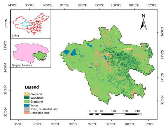 - Song, X.; Yan, C.; Zhu, Y.; Duan, H. Land Use/Cover Change and Its Eco-environmental Effects in the Source Region of the Yellow River. J. Desert Res. 2009, 29, 1049–1055. [Google Scholar]