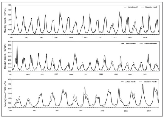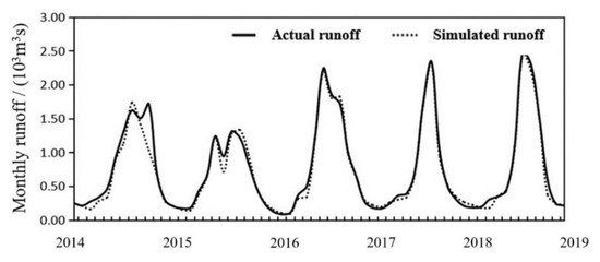 The model has a rate period of 1961–2013 and a validation period of 2014–2019. The deviation between the simulated values and the actual surface runoff observation data in the calibration periods and validation was controlled within ±20%.