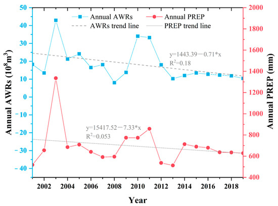 Temporal variation in AWRs and PREP in YRB during 2001–2019.