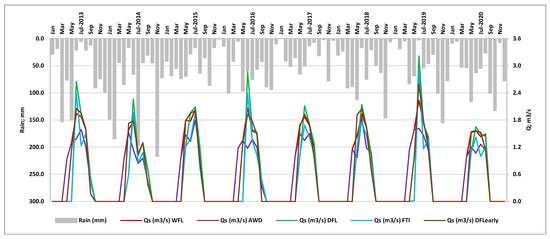 - Moriasi, D.N.; Arnold, J.G.; van Liew, M.W.; Bingner, R.L.; Harmel, R.D.; Veith, T.L. Model Evaluation Guidelines for Systematic Quantification of Accuracy in Watershed Simulations. Trans. ASABE 2007, 50, 885–900. [Google Scholar] [CrossRef]