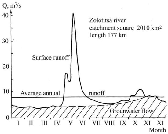 Simulation results of sedimentation from the surface waters of the Zolotitsa River and groundwater in the initial natural conditions.