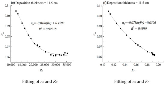 | 11.5 | nb = −0.04ln(Re) + 0.48 | 0.99 | nb = −0.073ln(Fr) − 0.06 | 0.99 |