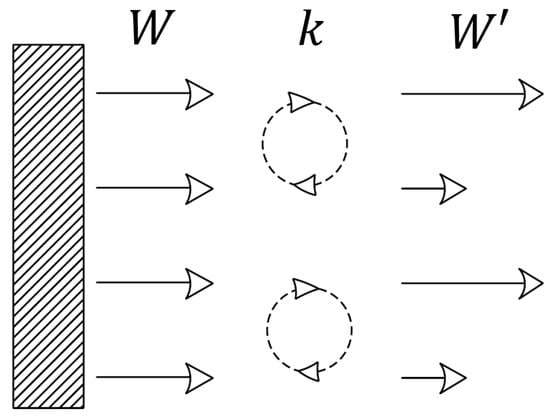 It is precisely because of this stratification that a differentiation occurs between the trajectories of particles characterized by high and low energy densities. In particular, it can be demonstrated that the generally greater influence of the Coriolis force in comparison to the centrifugal force drives the fluid particles with a higher relative speed W towards the blade PS. On the contrary, particles with a lower velocity W tend to flow towards the blade suction side, driven by the pressure gradient. Similarly, in the meridional section, fluid particles with a low kinetic energy density tend to flow toward the low-pressure region, i.e., toward the runner shroud surface, where > 0. This leads to the development of two separate flow regions: the wake region, characterized by a low energy density, and the jet region, characterized by a high energy density (Figure 3). The volume fraction between the wake and jet regions is defined by the balance between the centrifugal and Coriolis forces and hence by the runner geometry.