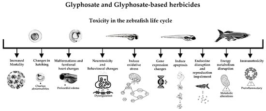 Effects of Glyphosate or Glyphosate-Based Herbicide during the Zebrafish Life Cycle: A Review Addressing the Mechanisms of Toxicity