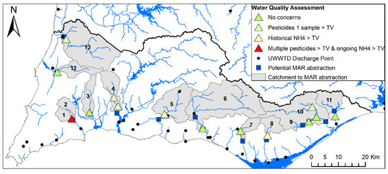 Analysis of the surface water quality identified that the groundwater threshold values for good status under the WFD could be met, with only a couple of sporadic exceptions where further investigation is warranted and only one catchment where a combination of low river flows and surface water quality issues possibly preclude MAR (Ribeira de Bensafrim/M2). By focusing on water sources that are likely to meet the requirements of the Groundwater Directive, MAR can be more easily implemented under current legislation.