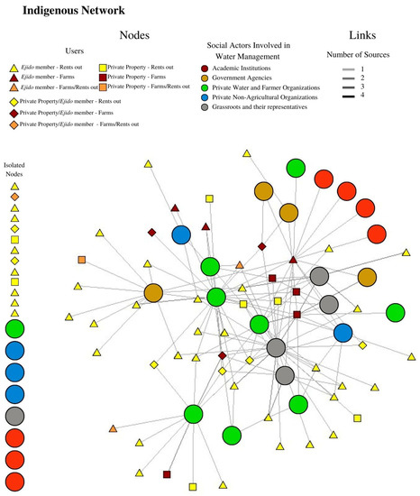 In social network analysis, exclusion of access to information may be considered a negative link [24] and has significant consequences on a network level [63]. Although analysis of negative links is beyond the scope of the present study, a group of indigenous users clearly exists who speak the indigenous language, have little formal education, and rent out their ejido land, and members of this group are excluded from water-use-related information, which exacerbates the existing power asymmetries between indigenous and non-indigenous users [64].