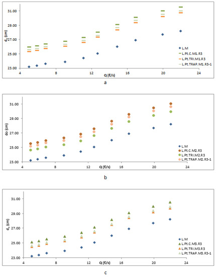 Lastly, on the basis of actual discharge, Equation (10) was used to obtain Cdw: