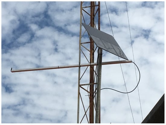 The sensor node circuit was also attached to the railing, and the solar panel was attached to a bamboo pole approximately three meters high, as shown in Figure 4 on the center and right. In this case, it was not necessary to lift the XBee® module antenna due to the proximity of this sensor node to the central node. The sensor node installed at P2 started operating on 10 July 2018.