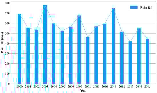Furthermore, the region experiences a significant increase in ground fissure activity following the rainy season, often characterized by beadlike sinkholes or collapse holes. Field investigations have revealed that during the period from 2000 to 2007, there was a higher frequency of ground fissure activity, which coincided with the trend in annual precipitation observed by the meteorological bureau (Figure 3). The opening of water erosion-induced ground fissures in this area is closely related to rainfall.