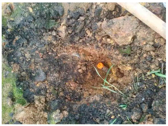The sampling site is located at the Xiangtan manganese mine, located in Hunan Province, China (27°59′04.9″ N, 112°51′30.6″ E). Soil sample MS, taken from the Mn-contaminated soil of Xiangtan using a shovel, exhibited a coarse texture and granular structure. The color ranged from a dark brown to black, indicating the presence of Mn (Figure 1). Small patches of reddish–brown were also observed, possibly due to the presence of Fe oxides or other minerals. The sample was dry to the touch, consistent with the semi-arid conditions of the area. The collected samples were carefully transferred into anaerobic bags and stored at 0–4 °C. They were then transported to the laboratory within 12 h to maintain the sample integrity.