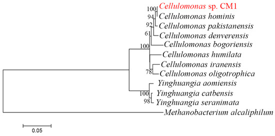 To investigate the potential role of an arsenic-resistant bacterium with Mn(IV)-reducing activity in the dissolution and release of arsenic from sediments, a novel ARB was isolated and named CM1 from Mn-contaminated soils. The 16S rRNA gene sequencing of CM1 revealed a 99.09% identity to Cellulomonas hominis, and strain CM1 was thus referred to as Cellulomonas sp. CM1 (Figure 3). Strain CM1 is affiliated to the phylum Actinomycetota and is the first Mn-oxide-reducing bacterium of the genus Cellulomonas.