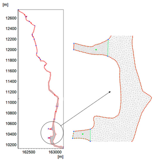 - Wang, Q.; Peng, W.; Dong, F.; Liu, X.; Ou, N. Simulating Flow of An Urban River Course with Complex Cross Sections Based on the MIKE21 FM Model. Water 2020, 12, 761. [Google Scholar] [CrossRef]