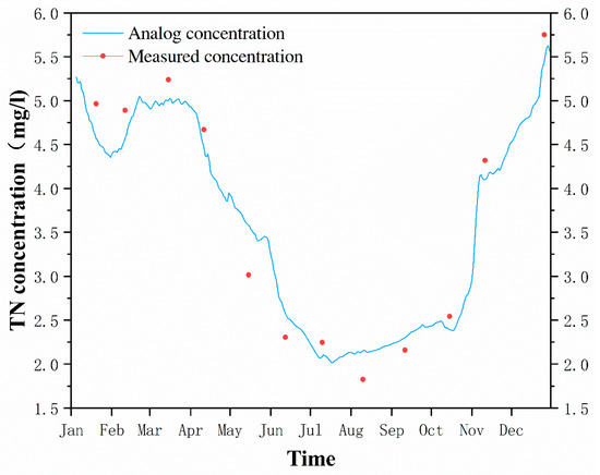 Prediction of the TN concentration reaching standards (average value of the five monitoring points).
