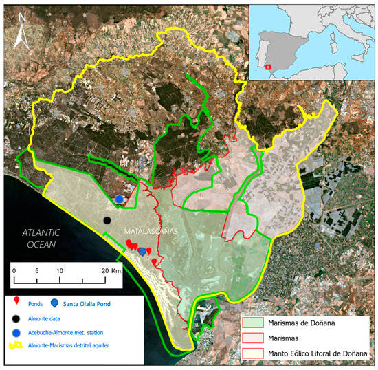 This work has been possible thanks to the collaboration agreement between the Guadalquivir Hydrographic Confederation and the Pablo de Olavide University: “Study of hydrological monitoring and modeling of the pond-aquifer relationship in the Doñana aquifer. Inventory and monitoring” (B.O.E. 23/07/2020, p. 56606). The logistical and technical support of the Singular Scientific-Technical Infrastructure of the Doñana Biological Reserve (DBR-ICTS) is gratefully acknowledged.