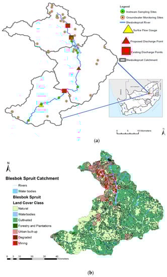 (a) Locality map of the Blesbokspruit River Catchment; and (b) Study area showing land cover activities, adopted from [].