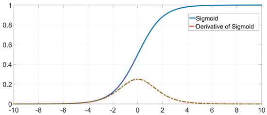 in which and are integer indices representing spatial locations; constant represents the minimum depth; constant is the varying range of depth; and gives the maximum depth. When the value of pseudo depth nears zero, the gradient of its sigmoid function has meaningful values; when approaches , the gradient of its sigmoid function approaches zero (see Figure 2). In the latter case, the backpropagation algorithm would not be able to update the pseudo depth because of the vanishing gradient, and therefore the actual water depth would remain unchanged. For the initial condition, we set the pseudo depth in the trained area equal to zero and in the rest of the wave field equal to 1 × 108, such that the actual water depth is updated only within the trained area and is always equal to in the rest area.
