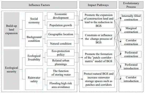 In summary, the BGS was driven by the urban social economy, the impact of physical geography, the promotion of ecological liveability, and the need for flood safety, showing different evolutionary processes (Figure 7). These four factors play different roles as the four vertices of the “sustainability prism model”.