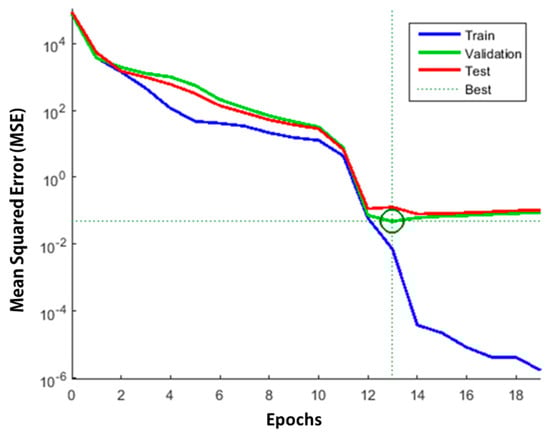 The best result for the ANN modelling was obtained for the network with nine neurons after 19 iterations, while the best validation result was displayed for the network after 13 iterations (Figure 12).