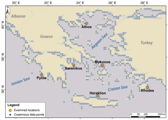 - Makris, C.; Galiatsatou, P.; Tolika, K.; Anagnostopoulou, C.; Kombiadou, K.; Prinos, P.; Velikou, K.; Kapelonis, Z.; Tragou, E.; Androulidakis, Y.; et al. Climate change effects on the marine characteristics of the Aegean and Ionian Seas. Ocean Dyn. 2016, 66, 1603–1635. [Google Scholar] [CrossRef]