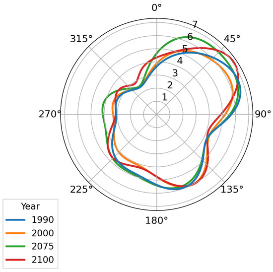 - Fisher, N.I. Statistical Analysis of Circular Data; Cambridge University Press: Cambridge, UK, 1995. [Google Scholar]