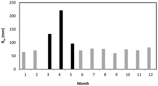 Mean monthly runoff Rm (mm), 1982–2021.