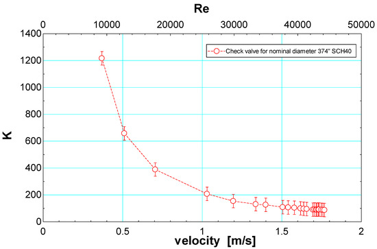 The loss coefficient of the check valve respects the velocity of flow in the pipe.