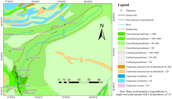 Regional hydrogeological map of the plain area of the Yarkant River Basin [23].