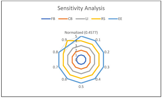 Sensitivity analysis of main criteria with “FB” criteria weight change from (0.4577*0.9 … 0.4577*0.1).