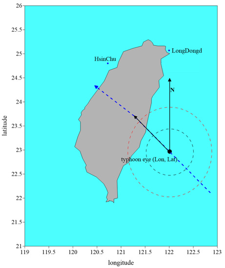 The input data for the typhoon wind speed model is evaluated and analyzed using the Best Track Data (BTD) from the Regional Specialized Meteorological Center (RSMC) of the Japan Meteorological Agency (JMA). The determination of the typhoon’s landfall time is based on the criteria provided by the CWB. The BTD database is widely recognized as one of the most reliable typhoon databases in the Northwest Pacific region and can be downloaded directly from the website. It is important to note that the time of the BTD data is not the same as the data provided by JMA. The BTD from JMA includes combination parameters with 3 h and 6 h intervals. These combination parameters include the time (in UTC), tropical cyclone, storm, and typhoon classifications, latitude and longitude coordinates of the typhoon center, central pressure intensity (in hPa), maximum sustained wind speed (in knots), minimum and maximum radii of 30 knots (15.43 m/s) and 50 knots (25.72 m/s) wind speeds, and corresponding wind directions. In applying stochastic typhoon models, parameters such as central pressure difference, maximum wind speed radius, typhoon translation speed, typhoon translation angle, and minimum distance to the typhoon are included. In synthesizing typhoon simulations using random numbers, it is assumed that the typhoon moves linearly according to its translation speed and angle.
