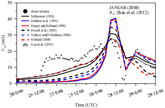 - Li, R.L. Prediction of Typhoon Extreme Wind Speeds Based on Improved Typhoon Key Parameters. Master’s Thesis, Harbin Institute of Technology, Harbin, China, 2007. (In Chinese with English Abstract). [Google Scholar]