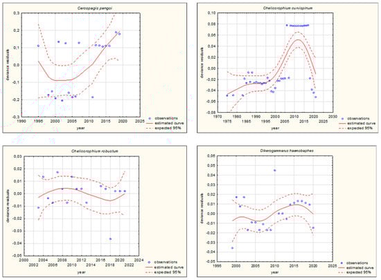 The long-term tendency in the movement of Southern European aquatic alien invertebrate species to higher northern latitudes (observed in the majority—in 98% of species) shows that these species generally moved to cooler areas. But in the case of some species, movement to the south occurred. However, the number of geographical coordinates confirming the movement of species to the south was not sufficient for the preparation of the plot in GAM.