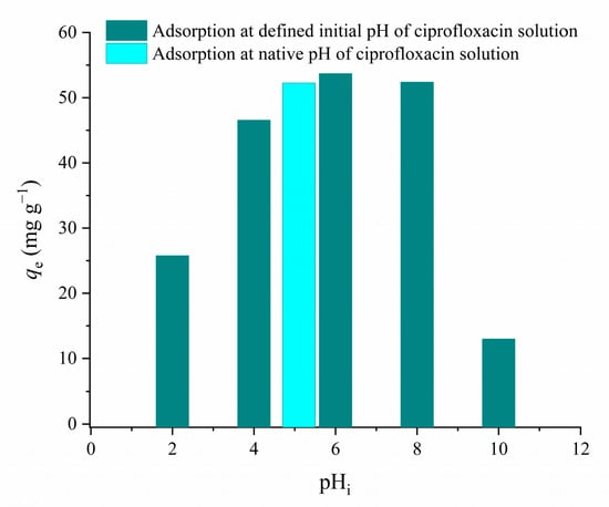3.2.2. The Effect of the Initial pH on CIP Adsorption