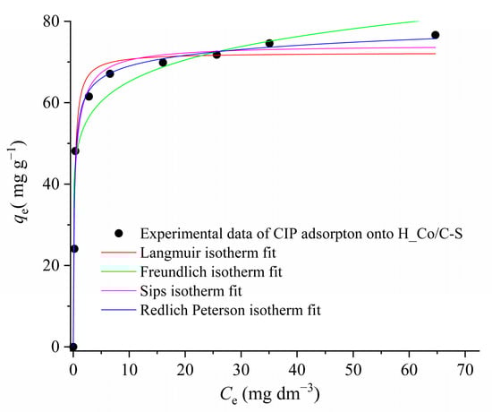 3.2.4. Adsorption Isotherm Analysis for CIP Removal