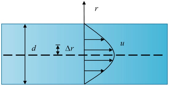 Schematic diagram of the flow velocity distribution in the pore tube of the simplified equivalent model of coarse-grained soil.