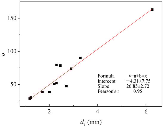 The least squares method is utilized for the linear regression analysis of variables de, α and k. Additionally, the strength and direction of the linear correlation are assessed employing the Pearson correlation coefficient.