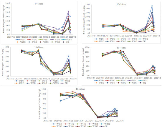 Variation in nitrate–nitrogen content of soils in different treatments.