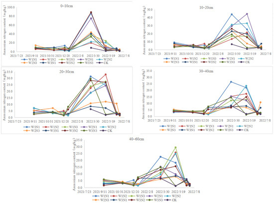 Changes in ammonium nitrogen content of soils in different treatments.